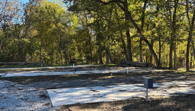 Heritage Trails RV Park offers full hookups, free Wi-Fi, and access to fishing at Flint Creek.